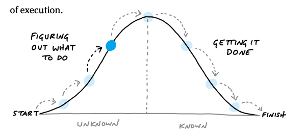 - It’s good to think of the first third uphill as “I’ve thought about this,” the second third as “I’ve validated my approach,” and the final third to the top as “I’m far enough with what I’ve built that I don’t believe there are other unknowns.”